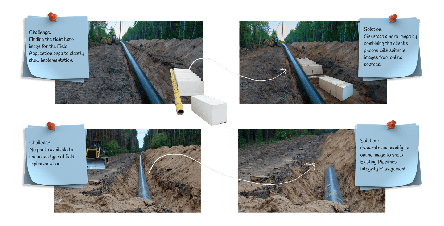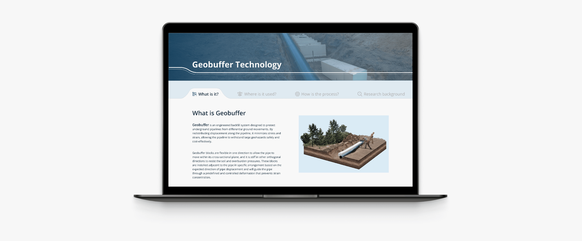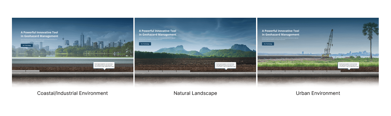 To achieve this goal, we designed a dynamic hero section where the underground pipeline remains constant, while the surface changes to highlight various real world applications. Additionally, we introduced Geobuffer technology within the hero image, emphasizing its role in enhancing performance and reliability across diverse scenarios.