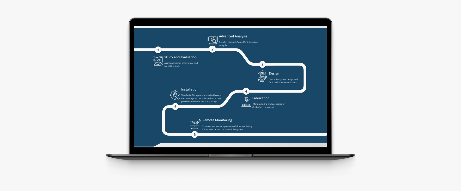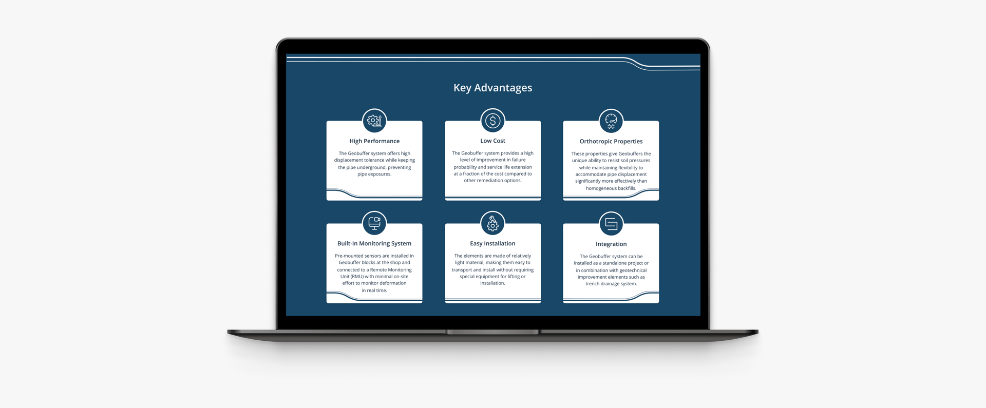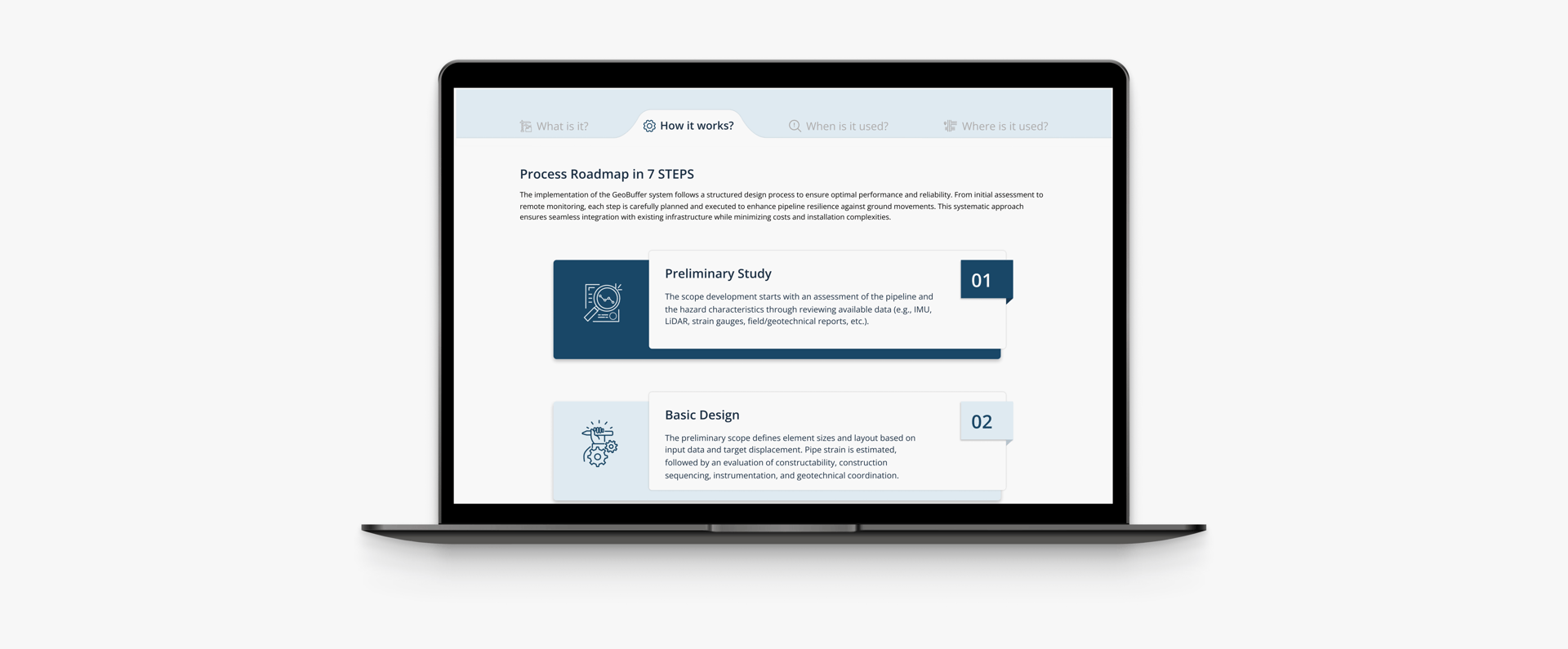 To achieve this goal, we designed a dynamic hero section where the underground pipeline remains constant, while the surface changes to highlight various real world applications. Additionally, we introduced Geobuffer technology within the hero image, emphasizing its role in enhancing performance and reliability across diverse scenarios.
