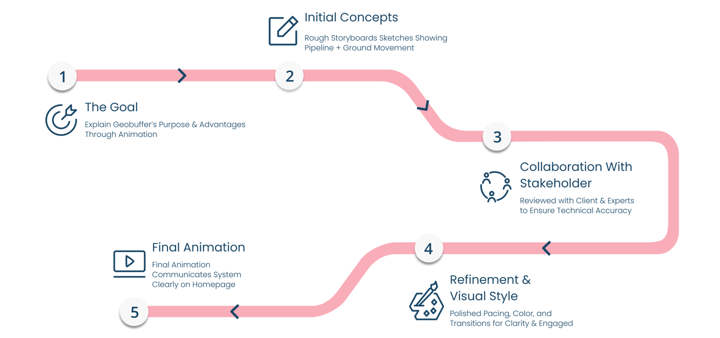 To make this easier for users, we leaned heavily on visual storytelling. We designed an interactive hero image to introduce Geobuffer at first glance. Custom icons were developed to guide users through each section, making the content easier to follow. We also brought in GIFs and subtle animations to demonstrate how the system works, helping simplify abstract concepts through motion.