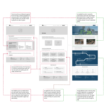 Through multiple rounds of usability testing with our target users, including engineers and professionals with industrial backgrounds, we gathered feedback and made several key iterations. These refinements helped us finalize the structure of the website. Below, I highlight a few of the most impactful changes made during this process.