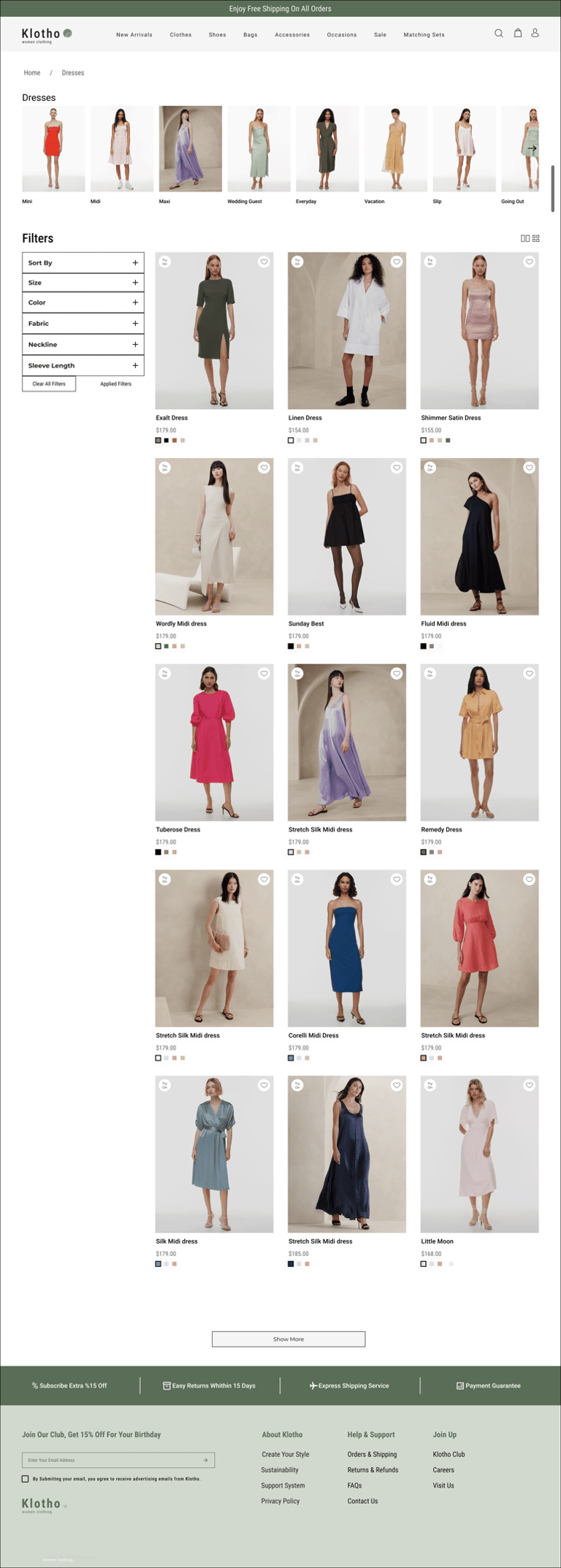 Klotho is an online shop for women that provides versatile, stylish clothing that bridges the gap between formal and casual wear. Drawing inspiration from leading fashion brands, our user friendly platform makes it easy for women to discover and purchase outfits for various occasions at affordable prices.