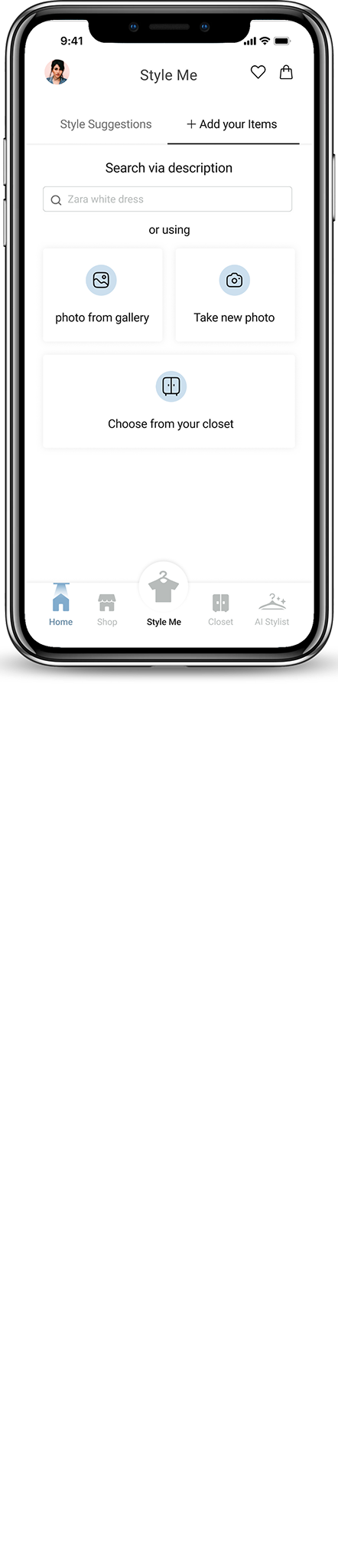 Ensuring users quickly understand the AI stylist feature at a glance.